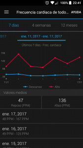 Por ejemplo, si seleccionas la frecuencia cardiaca, el hardware te cargará un gráfico de esta.